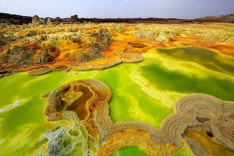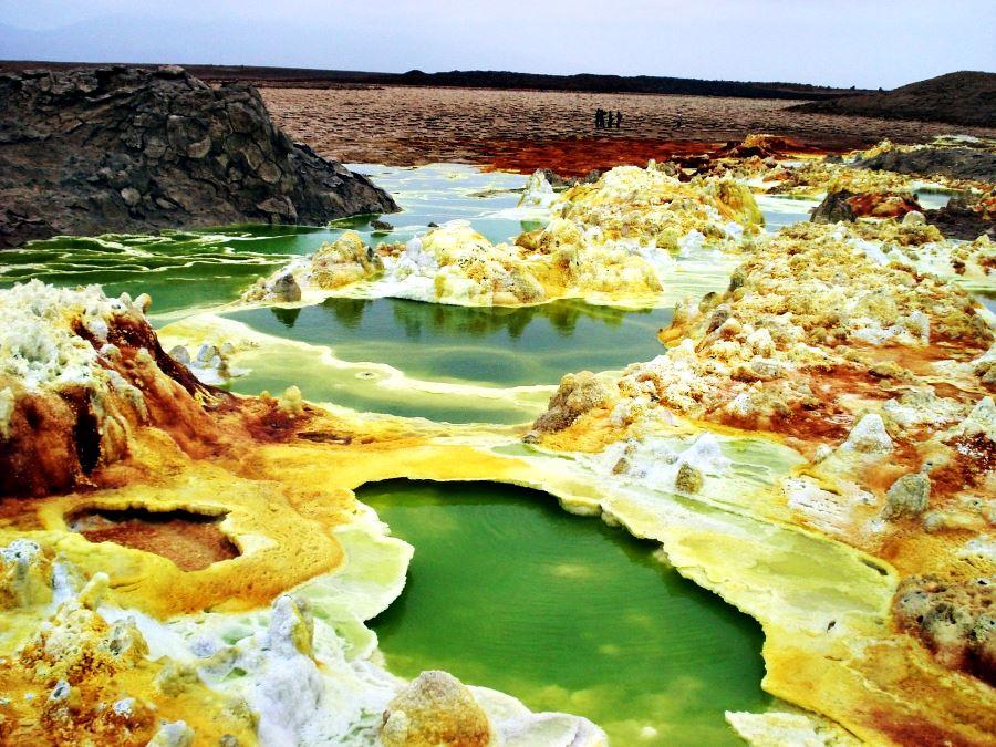 Це місце ще називають "Пеклом на Землі". Таку назву воно отримало через неймовірну спеку, яка досягає 50°C, і газів, що отруйними парами вириваються з надр землі. Велика кількість вулканів і сірчаних озер створює просто фантастичні ландшафти, але мала кількість кисню, токсичні гази і нестерпна спека зовсім не дозволяють насолодитися ними. Хоча в пустелі вдається виживати деяким ефіопським племенам, яким вдалося звикнути до особливостей місцевого клімату, але краще з ними все-таки не зустрічатися, оскільки навіть за найменшу наживу вони готові вбити будь-кого. Ходити пустелею без гіда – заборонено.