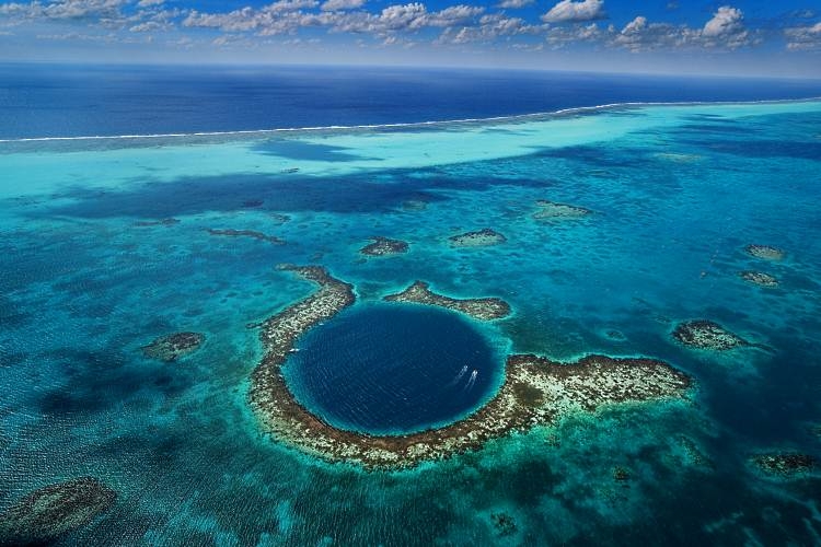 Приголомшливо красиве, і настільки ж небезпечне місце, як магнітом, притягує дайверів з усього світу. Воронка, діаметром 305 метрів, і глибиною 123 метри, що має безліч підводних печер, лабіринтів, сталактитів і морських жителів, в тому числі акул-няньок. Навіть найдосвідченіші пірнальники планети не ризикують занурюватися більш, ніж на 20-30 метрів, а новачки "хлюпочуться на поверхні", на глибині до 10 метрів. Ті, хто ризикнув пірнути глибше, стверджують, що в печерах зустрічаються скелети з кисневими балонами, тому це небезпечне місце прозвали "кладовищем дайверів".