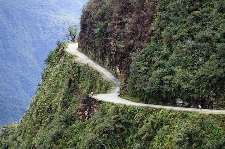 Найнебезпечніша гірська дорога в світі розташована в Болівії, її протяжність становить майже 70 кілометрів, а найвища ділянка досягає 3,6 кілометра. Ця дорога – єдиний маршрут, що зв'язує місто Коройко та Ла-Пас. В деяких місцях вона настільки вузька, що колеса проїжджаючих вантажівок і автобусів мало не зісковзують у прірву. З однієї сторони скеля, з іншої – провалля висотою 600 метрів. Трагічні випадки тут трапляються регулярно: щороку в безодню зриваються в середньому 26 автобусів і гине близько 300 людей. На диво, туристи люблять це місце за велосипедні екскурсії, сповнені адреналіном. Та навіть на велосипеді тут не можна ні на секунду втрачати уваги, адже дорога дуже кам`яниста. Про небезпеку цього місця важко забути – обабіч дороги стоять хрести і іржавіють "останки" машин, які не зірвалися вниз.
