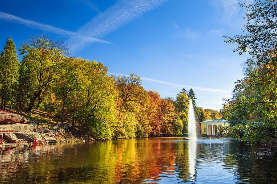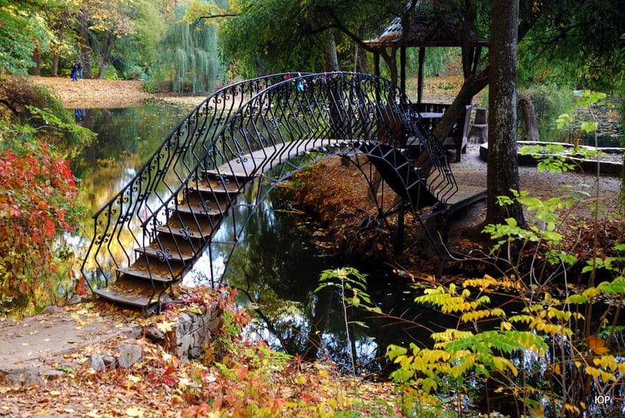 Один із самих популярних парків в Україні – парк Софіївка, є пам’ятником ландшафтного типу світового садово-паркового мистецтва XVIII – XIX ст. Парк був створений в 1796 році польським магнатом Станіславом Потоцьким в подарунок своїй дружині Софії і названий в її честь. Створювався парк кріпосними селянами практично на безлісій місцевості. Та за деякий час на 170 га з’явилося більше 3 тисяч екзотичних і звичайних дерев та рослин, серед яких: тюльпанове дерево, платан, болотяний кипарис, сосна Веймутова. По величезній території з озерами та ставками розташовані доглянуті алеї, дивні фонтани, прекрасні скульптури, а також оригінальні альтанки і романтичні містки. Більшість елементів в парку нагадують будівлі, що описані в поемах Гомера, наприклад Центральні ворота нагадують вхід в Афінський ринок, а сторожові башти схожі на ті, що в італійському храмі богині Вести. Найкраще тут побувати восени, щоб побачити неймовірні поєднання яскравих кольорів біля мальовничих ставків і відчути силу багаторічних дерев в золотому вбранні.