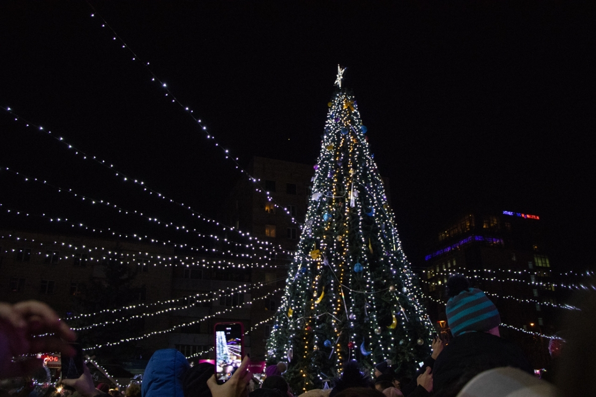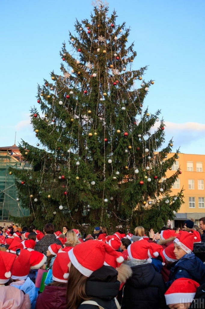 Саме у Львові ялинка засяяла найшвидше. Новорічне дерево місту подарувала галичанка з села Брюховичі, тому львів'яни отримали її задарма. 18-метрова красуня на площі перед Оперним театром прикрашена лише гірляндою з ліхтариків тепло-золотавого кольору. Іграшок цього року на дереві немає. На неї з бюджету виділили 292 тис грн.