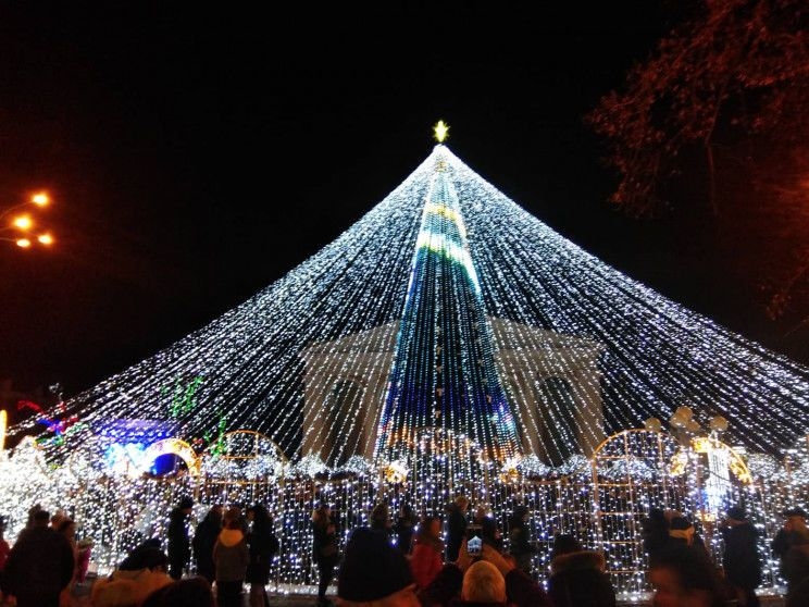 Житомир прикрасила цьогоріч жива 17-метрова новорічна ялинка. На ній - 824 іграшки, 30 декоративних прикрас. Освітлює дерево близько 1 кілометра гірлянд різних кольорів.