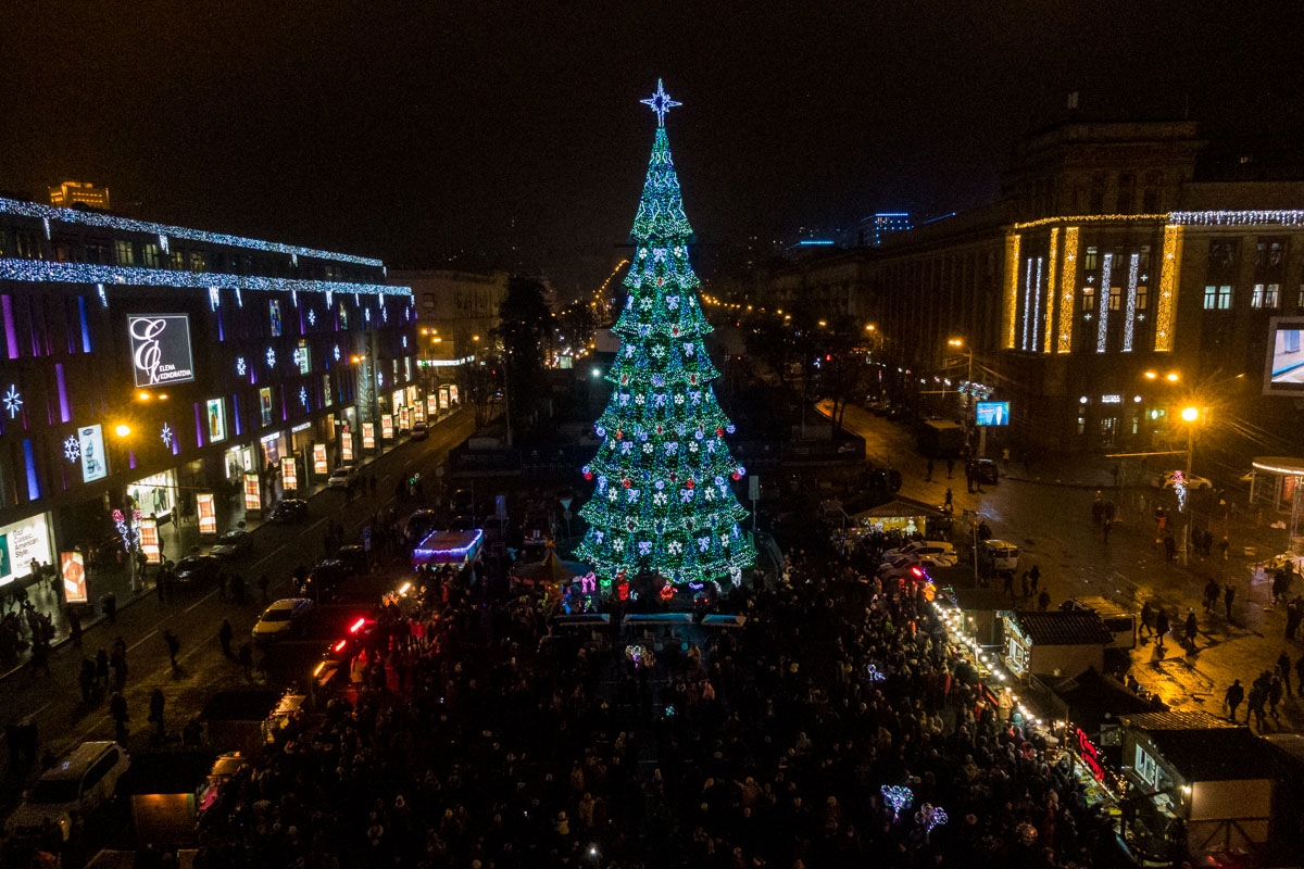 18-ти метрову головну ялинку Запоріжжя встановили на площі Фестивальній. Торік у каркас вмонтували 270 живих гілок, нині оздобили штучними. Вартість деревця разом із гірляндами – 1,4 мільйона. Спеціально для ялинки на Фестивальній запорізькі діти зробили багато іграшок своїми руками.