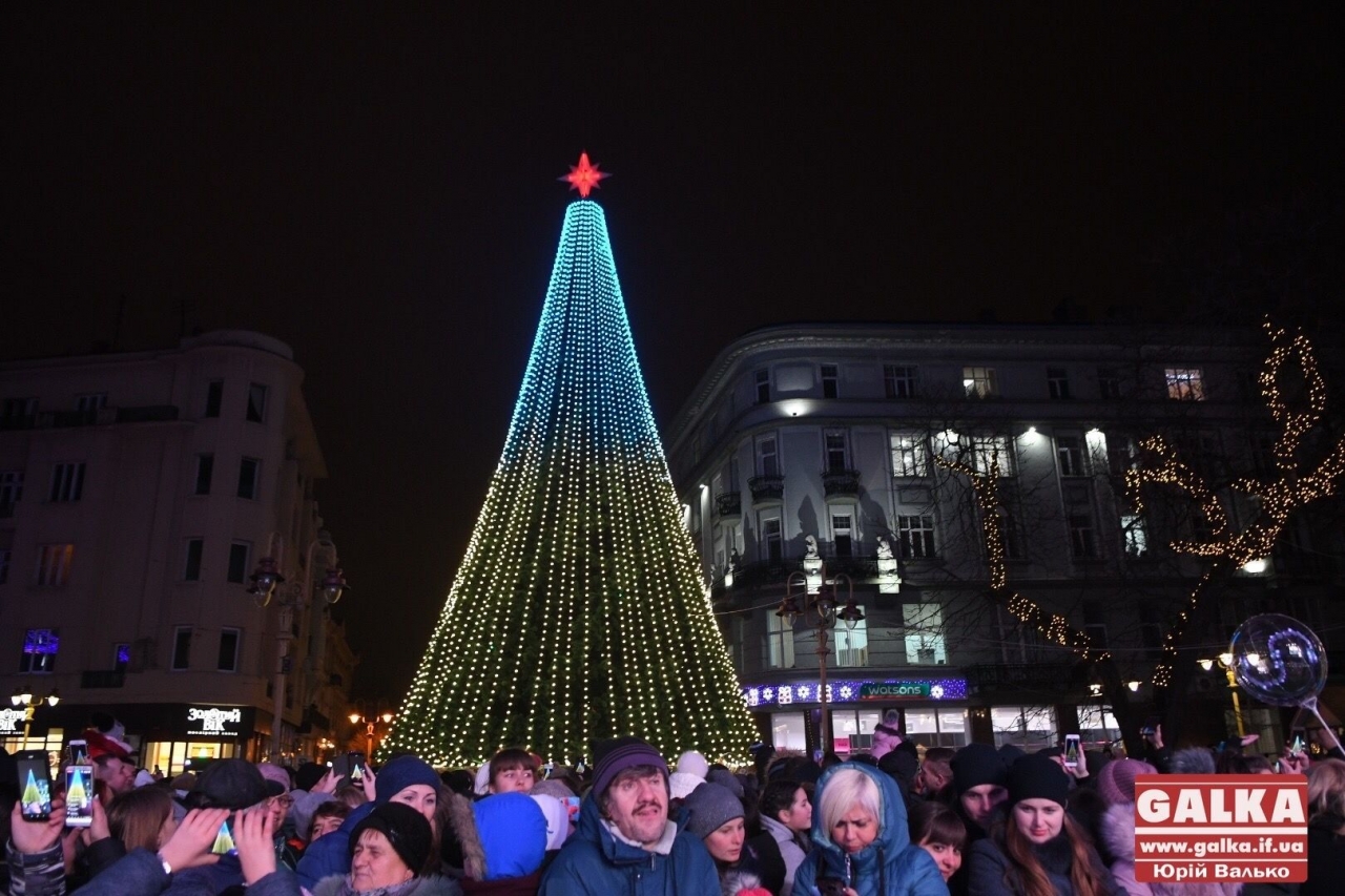 Другий рік поспіль у Франківську стоятиме штучна новорічна ялинка. Її висота – 18 метрів, ширина – 8 метрів. Як і минулого року, ялинку прикрасили 3D-ілюмінацією.