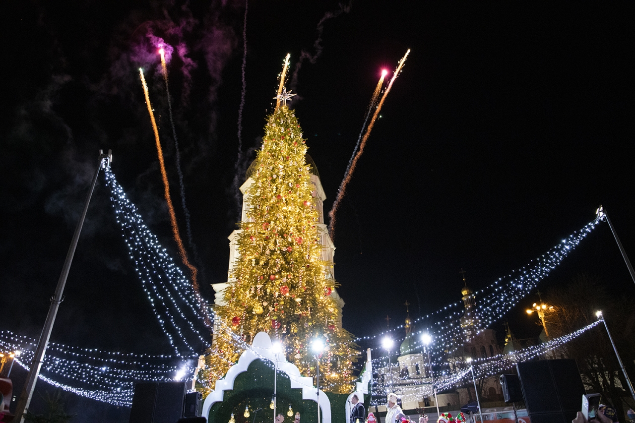 Головну ялинку України встановили на Софійській площі Києва в День Святого Миколая. Висота новорічної красуні становить 33 метри. Привезли 90-річне дерево з Івано-Франківщини. Ялинку прикрасили метровими ліхтарями, тисячами іграшок та 3,6-кілометровою гірляндою. Вартість київської ялинки склала 86 тисяч гривень, прикраси ж обійшлися у 2,7 мільйона