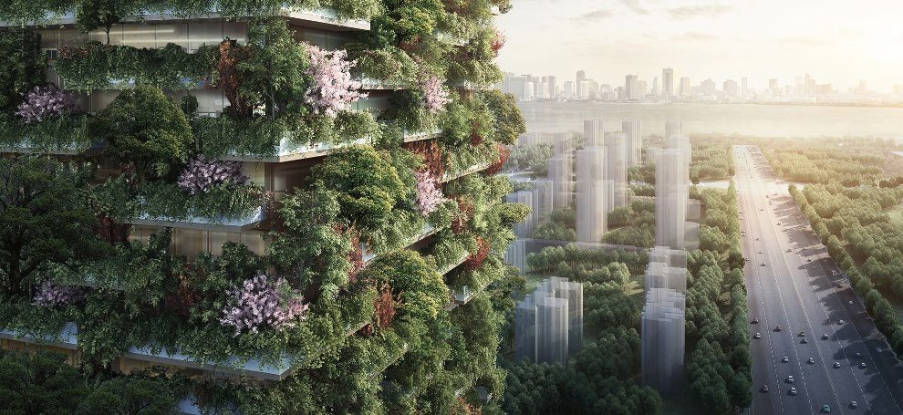 Експериментальний проект Chengdu's Qiyi City Forest Garden в китайському мегаполісі Ченду з'явився 2018 року. Він повинен був стати унікальним прикладом "зеленого" житла з великими доглянутими садами на кожному балконі: приміщення спроектували так, щоб дати рослинам достатньо місця для росту. Двадцять видів рослин мали справлятися зі смогом і шумом вулиць та перетворити фасади будівель на вертикальний ліс.