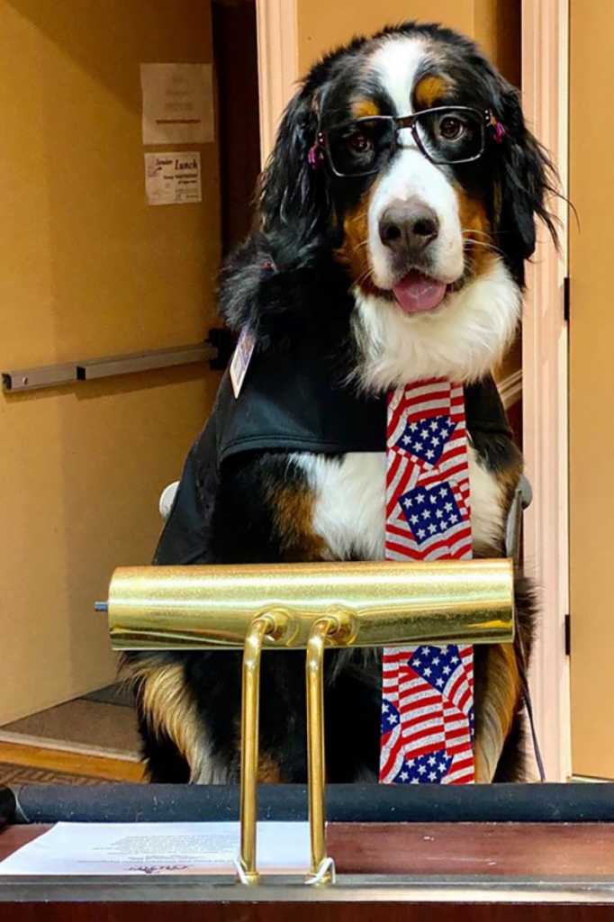 Під час інавгурації зал був забитий, пише NY Post. Сам пес прибув на церемонію в краватці, окулярах і «з виляючим хвостом».