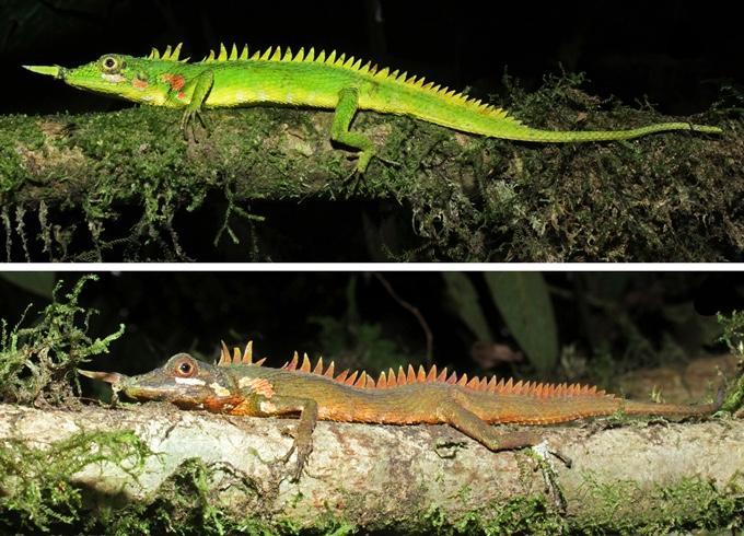 У порівнянні з блідим зразком, який зберігся ще від самого Модільяні, жива ящірка демонструвала яскраво-зелене забарвлення, що служить добрим камуфляжем серед місцевої рослинності. Однак ретельне зіставлення підтвердило, що і старовинний зразок, і знайдена у 2018 році тушка, і помічені пізніше живі ящірки — представники одного і того ж виду носорогих драконів.