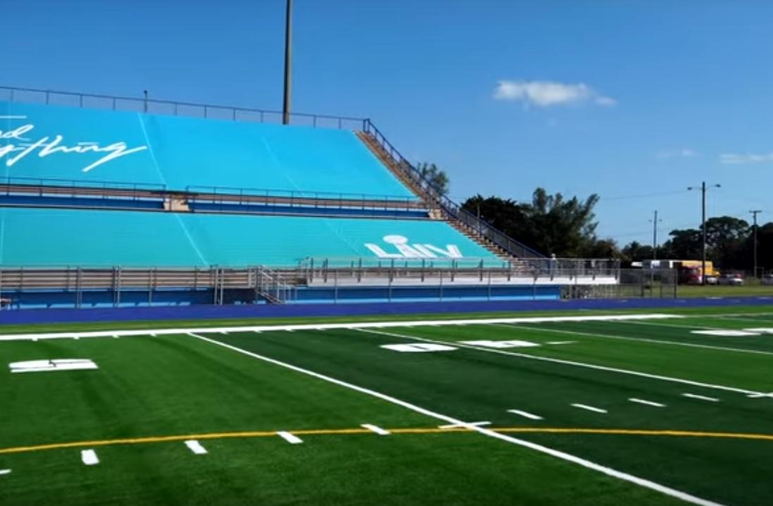 Знаменитий футбольний стадіон середньої школи в Південній Флориді отримав неповторний вигляд від Nike незадовго до Super Bowl LIV. Щоб повністю покрити поверхню футбольного поля, компанія використала 128 тисяч кілограм Nike Grind Infill, який являє собою гумовий матеріал, виготовлений з переробленого спортивного взуття.