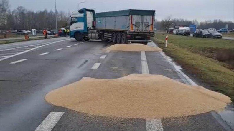 11 лютого перед пунктом пропуску "Ягодин — Дорогуськ", де третій день заблокований рух вантажівок, польські фермери висипали зерно з кількох українських фур. За даними польського видання RFM 24, справу розслідує поліція. На ситуацію також відреагували в посольстві України у Польщі.