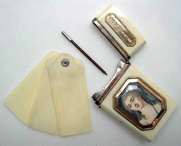 Бальна книжка (carnet de bal) був обов'язковим атрибутом дами минулого. Правда книжкою таке пристосування назвати складно, адже це всього кілька скріплених між собою пластин зі слонової кістки й маленький олівець. На цих пластинках дами записували імена кавалерів, з якими танцювали. Олівець легко стирався з пластин і їх можна було використовувати багаторазово. На окрему увагу заслуговує футляр «книжечки». Він міг бути виконаний з срібла або золота та прикрашений дорогоцінним камінням, гравіюванням, емаллю або об'ємними візерунками.