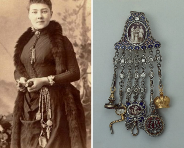 Шатлен - це популярний поясний аксесуар, відомий з часів середньовіччя. Ця практична прикраса, яка була у вигляді одного або кількох ланцюжків, на яких кріпилися різні потрібні дрібниці: кишеньковий годинник, ножиці, дзеркальце, ключі та інші речі. Шатлен був показником статусу господині, а тому, часто був масивним і щедро декорованим.
