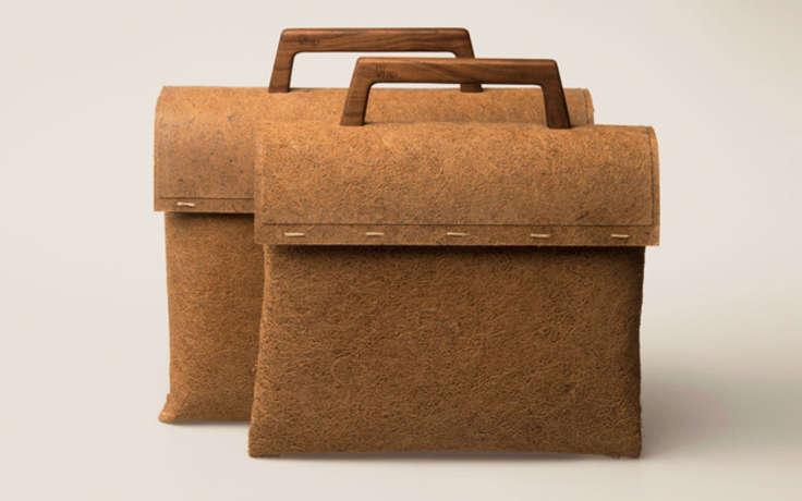Верхня частина аксесуару зроблена з кокосового волокна і смоли, а матеріал внутрішніх відділень покритий каучуком для забезпечення водонепроникності. Навіть нитки, якими зшиваються деталі портфелю, виготовлені із деревного волокна. Ручки зроблені з деревини лісового горіха.