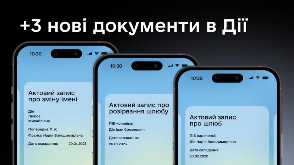 У Дію додали три нові документи: свідоцтва про шлюб, розірвання шлюбу та зміну імені.
