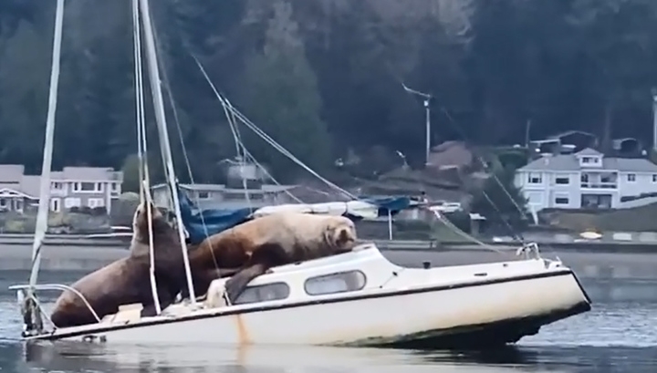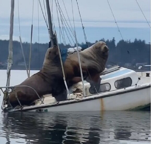 Неподалік від американського міста Олімпія (штат Вашингтон), була помічена парочка ластоногих, відпочиваючих на яхті.