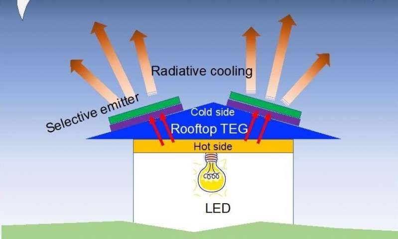 Уночі панель, встановлена на даху, направляє до космосу невидиме інфрачервоне випромінювання, завдяки чому можна отримати до 2,2 ват на квадратний метр.