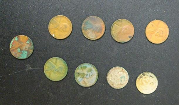 Сумка була затягнута павутиною. Всередині знаходилося ціле «багатство» - фотографії, читацький квиток, монети, косметика, календарик, прикраси, гребінець, олівці та багато іншого.