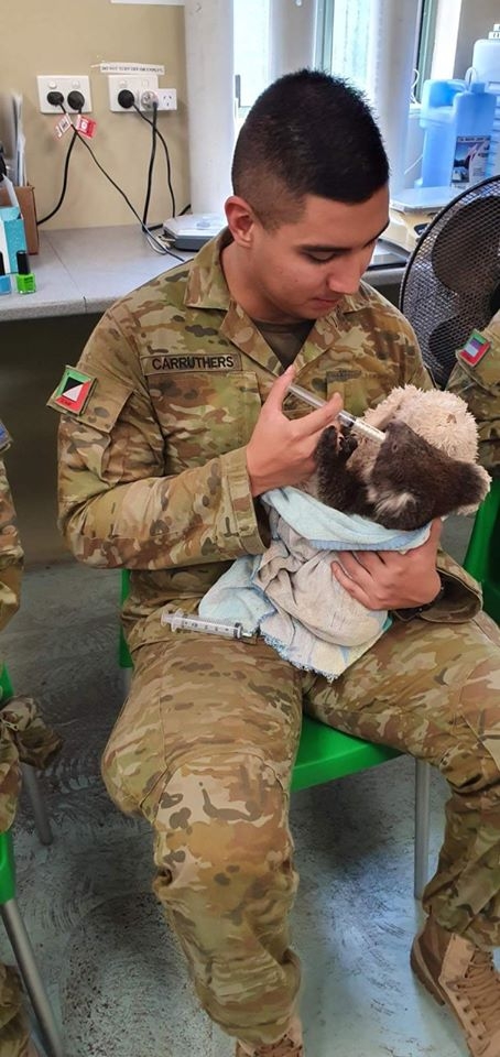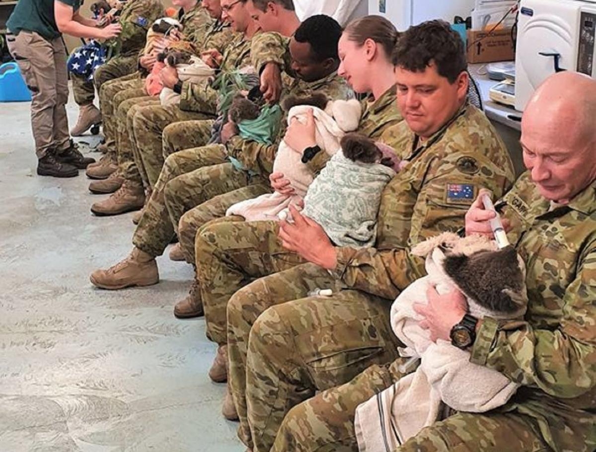 В Австралії військовослужбовці підрозділів служби надзвичайних ситуацій використовують вільний час, щоб навідатися в парк дикої природи та погодувати коал.