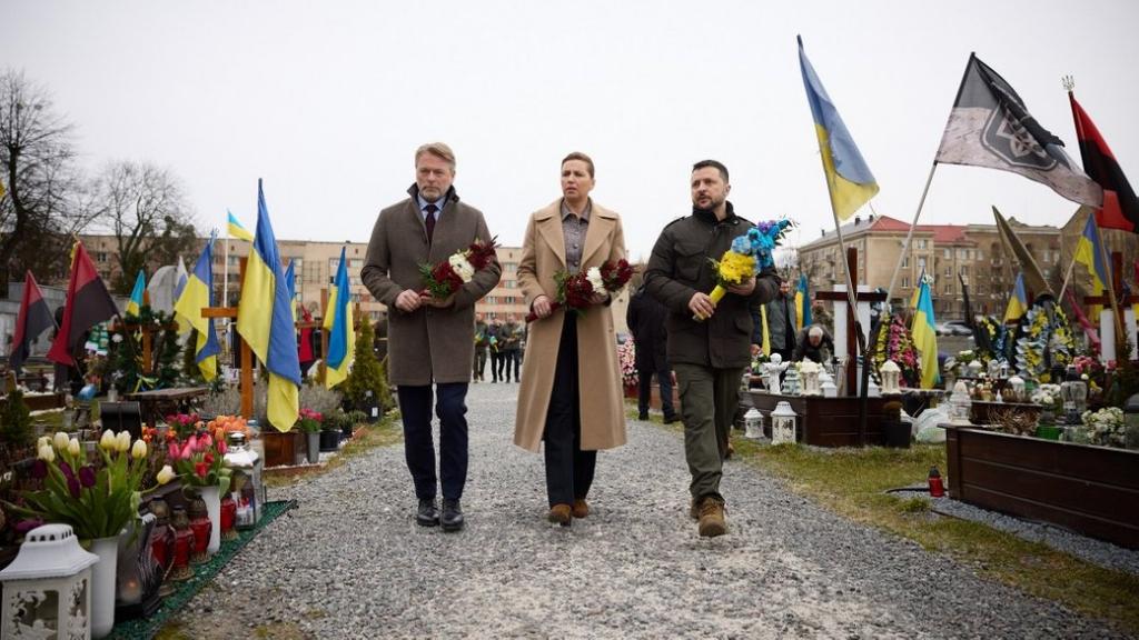 У Львові, 23 лютого, із робочим візитом перебуває Президент України Володимир Зеленський. Він разом із прем’єр-міністеркою Данії Метте Фредеріксен вшанували пам’ять загиблих захисників.